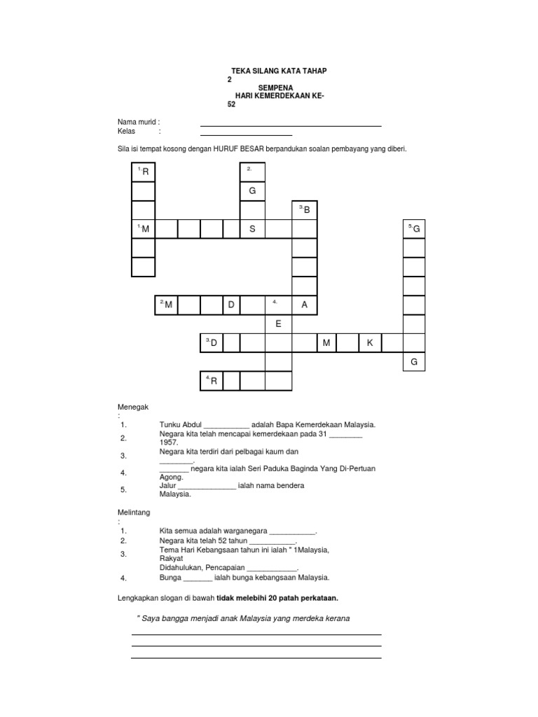 Adakah anda sedang mencari Pelbagai Jawapan Teka Silang Kata Kemerdekaan Yang Sangat Bermanfaat Untuk Ibubapa Download. Jawapan teka silang kata hari kemerdekaan 2021 jawapan teka silang kata hari kemerdekaan singapura jawapan teka silang kata hari kemerdekaan 2020 jawapan teka. Jawapan Teka Silang Kata KemerdekaanNegara kita telah mencapai kemerdekaan pada 31 _ 1957.